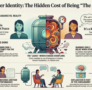 People who operate this way do not experience themselves as “controlling.” They experience themselves as responsible. They do not feel rigid, they feel necessary. They do not hear “overfunctioning,” they hear “I’m the only one who will handle it correctly.” The identity is built from repetition: crisis appears, response is competent, everyone calms down, reputation strengthens, internal cost is ignored, cycle repeats.